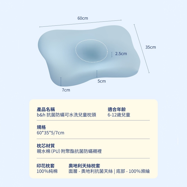 - 材質:100%可水洗枕芯(聚氨酯),抗菌防蟎內套(聚酯纖維),枕套(全棉+聚脂纖維)