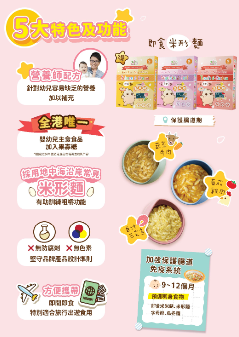 - 採用地中海沿岸常見米形麵,有助訓練咀嚼能力