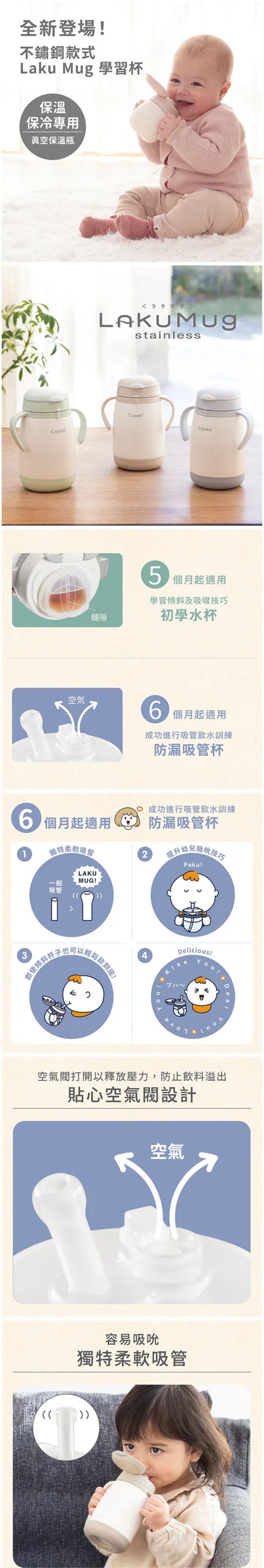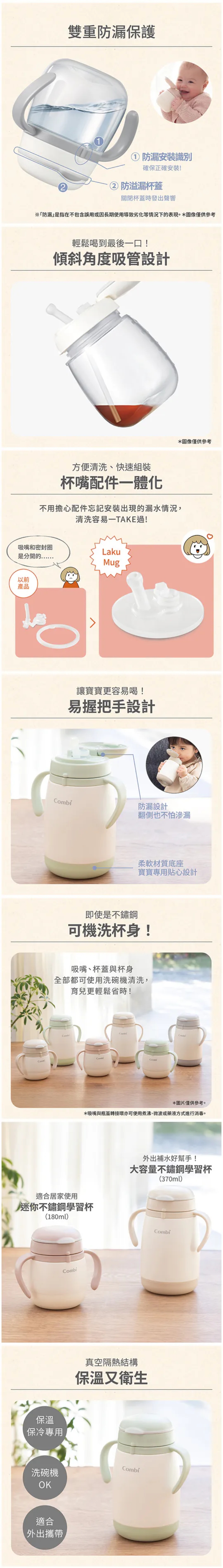 - 雙重防漏保護,出街入袋不擔心,傾斜角度吸管設計,讓寶寶輕鬆河道最後一口