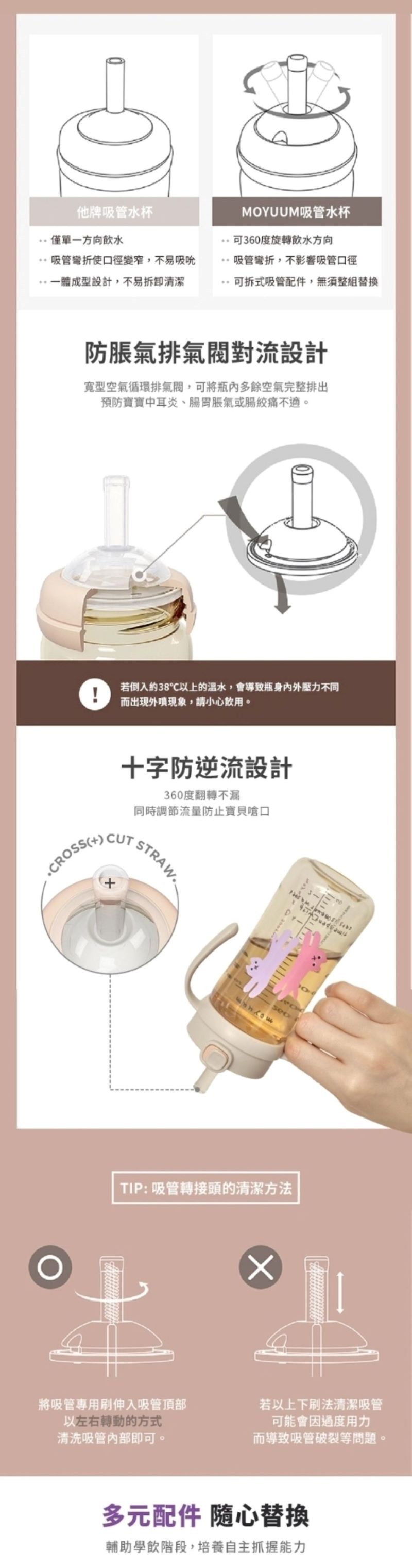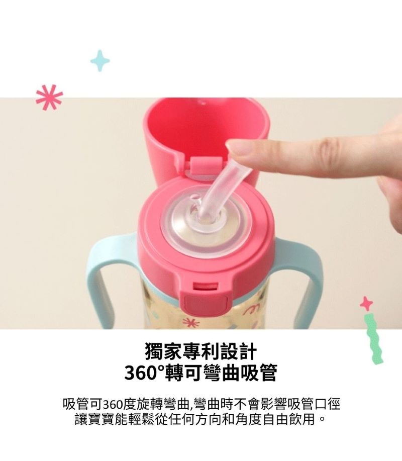 - 獨家專利設計,可360度旋轉飲水方向防漏設計