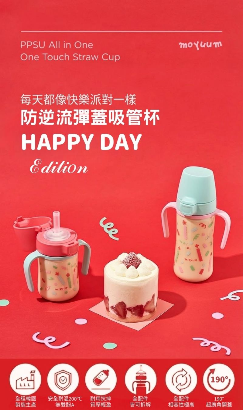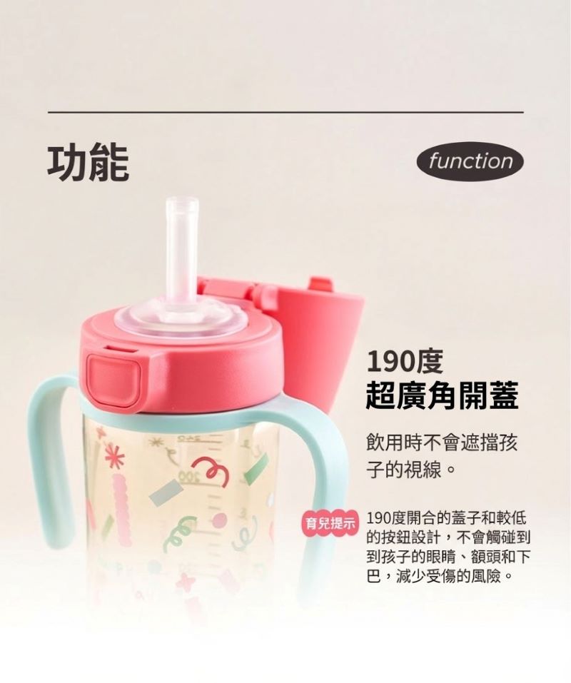 - 190度 廣角開蓋,寶寶輕鬆飲用