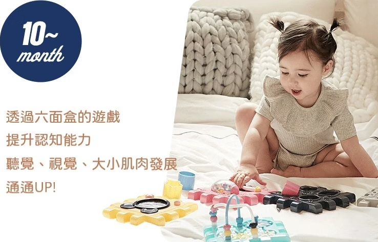 - 六面遊戲設計:整合觸覺、視覺、聽覺,提升手眼協調、大小肌肉與認知力