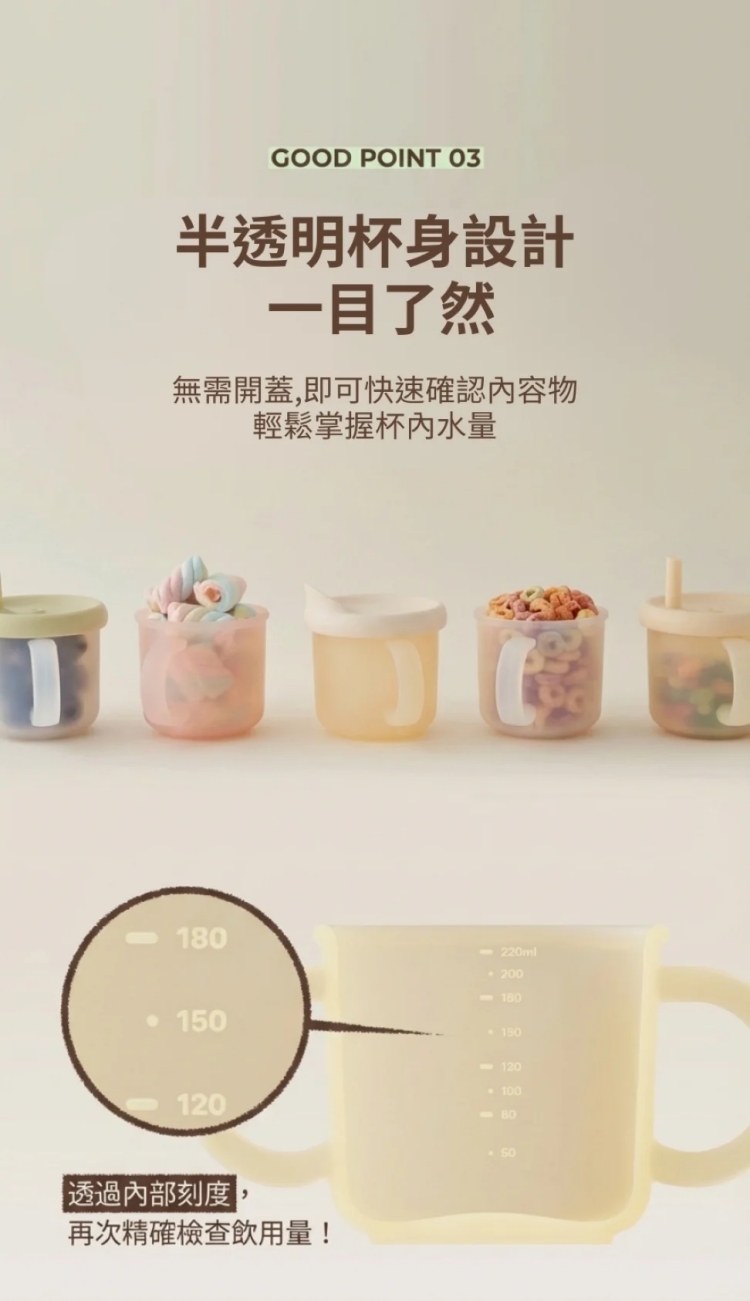 - 容量標示+半透明杯身:輕鬆掌握寶寶每日飲水量