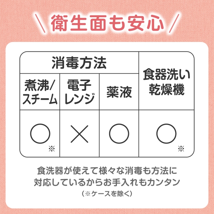 - 可煮沸、洗潔液、洗碗機消毒,安全衛生