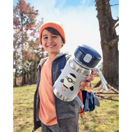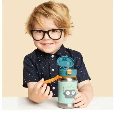- 瓶身帶有易抓矽膠套,彈出式杯蓋,柔軟的吸管極易吸吮,配有鉤環抓帶可固定在任何物品上