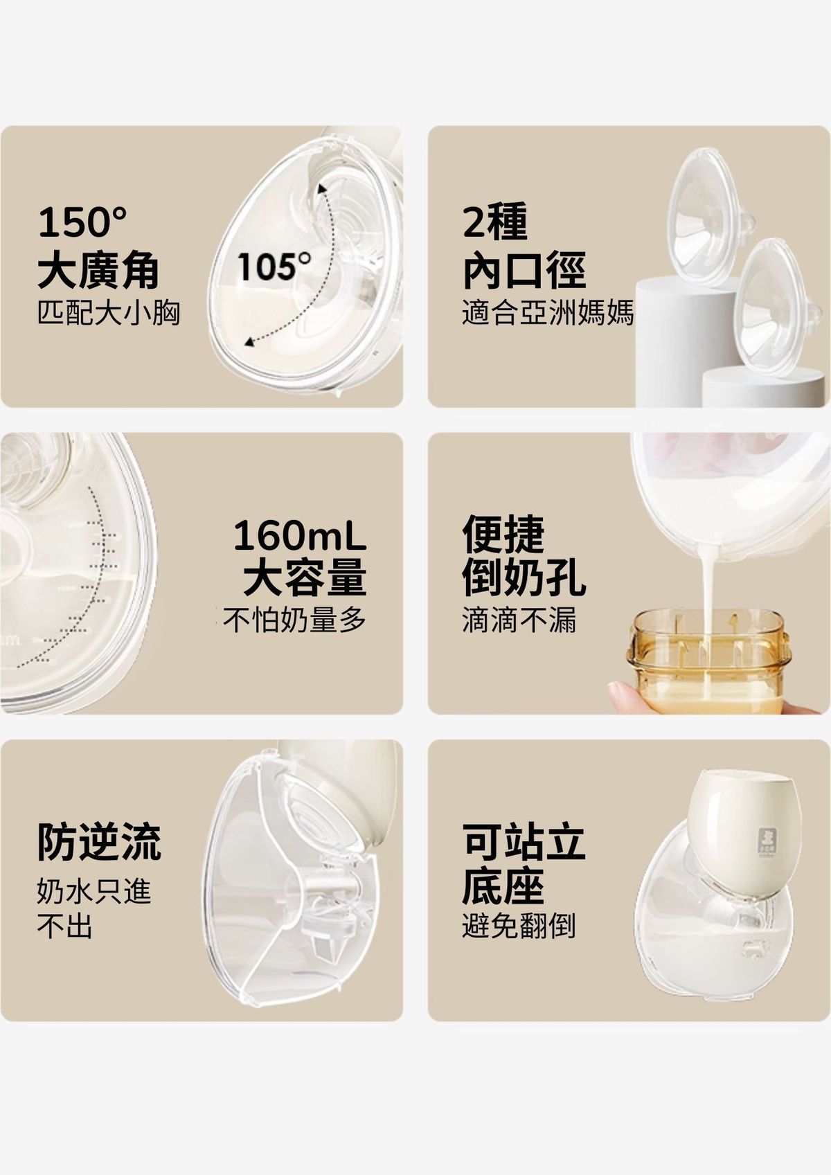 - 緊密貼合乳房,不漏氣,泵奶較順暢