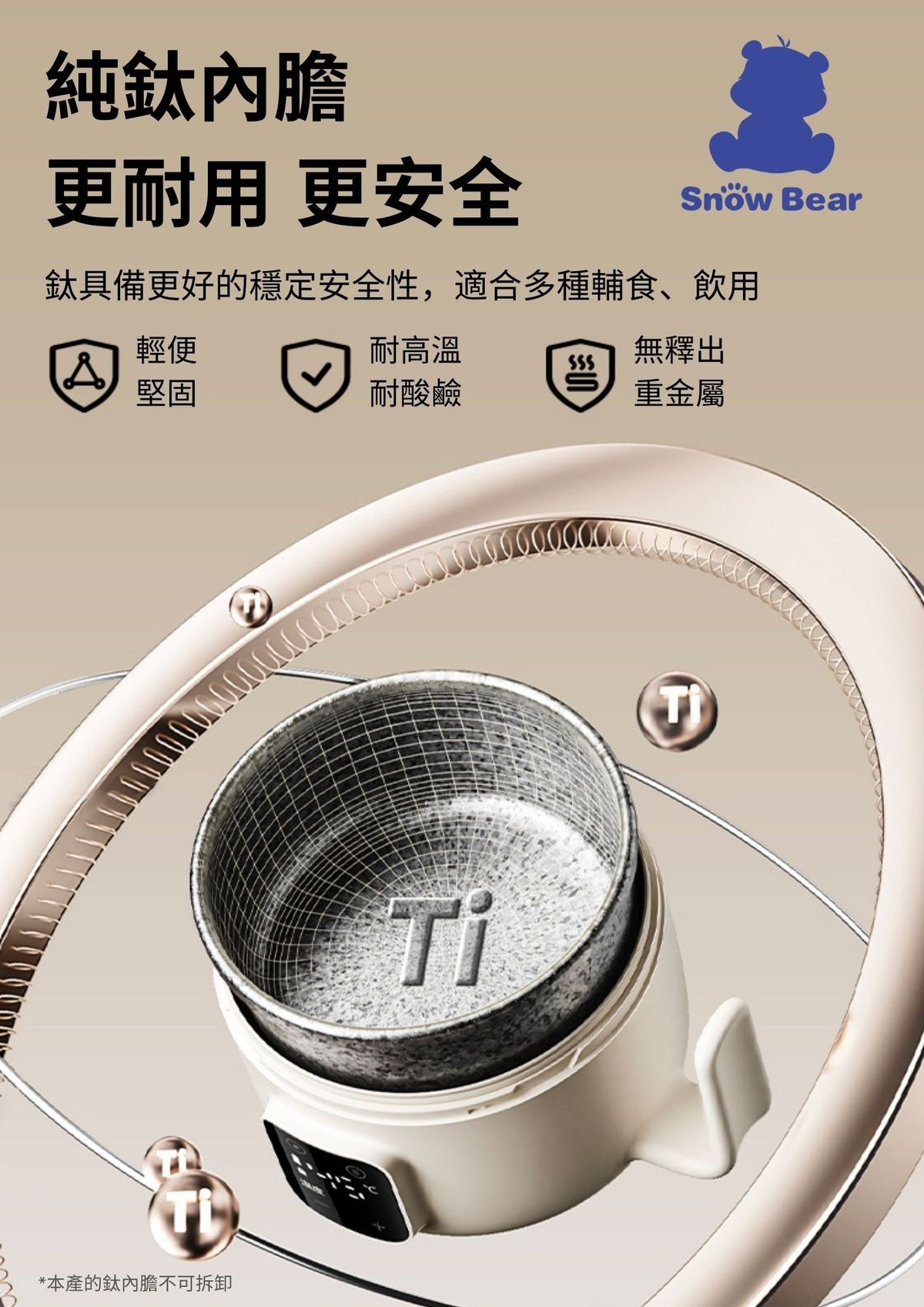 - 99.97%純鈦內膽:採用高純度鈦材質,安全無毒,耐腐蝕。