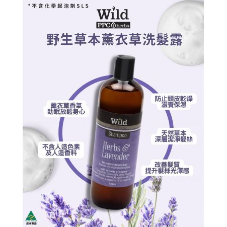 取適量塗抹在濕髮上,輕搓至起泡沫並徹底沖洗。要達到最佳效果,建議配合PPC HERBS野生草藥薰衣草護髮素使用。