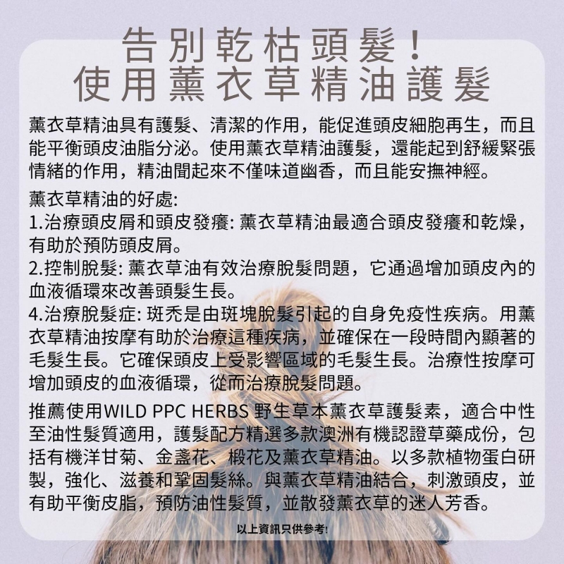 要達到最佳效果,建議配合PPC HERBS野生草藥薰衣草洗髮露使用