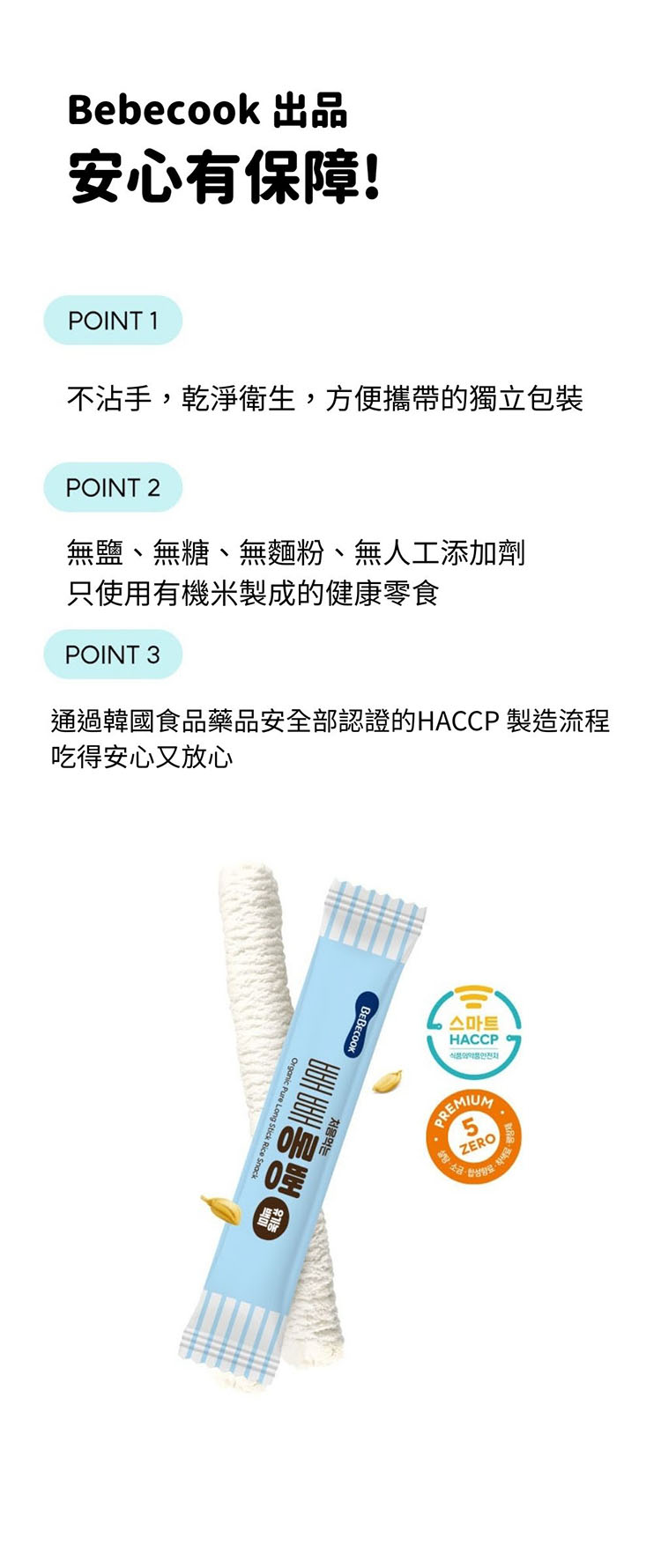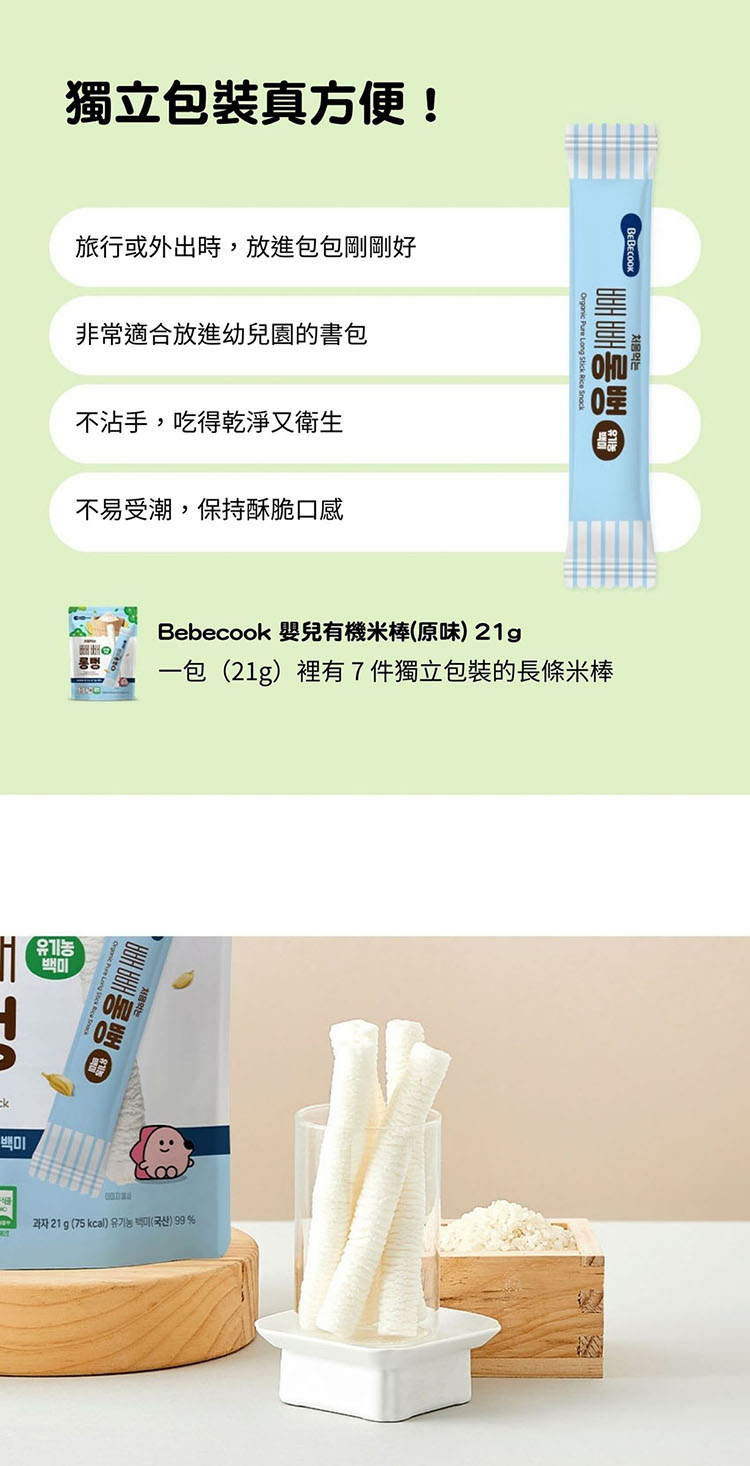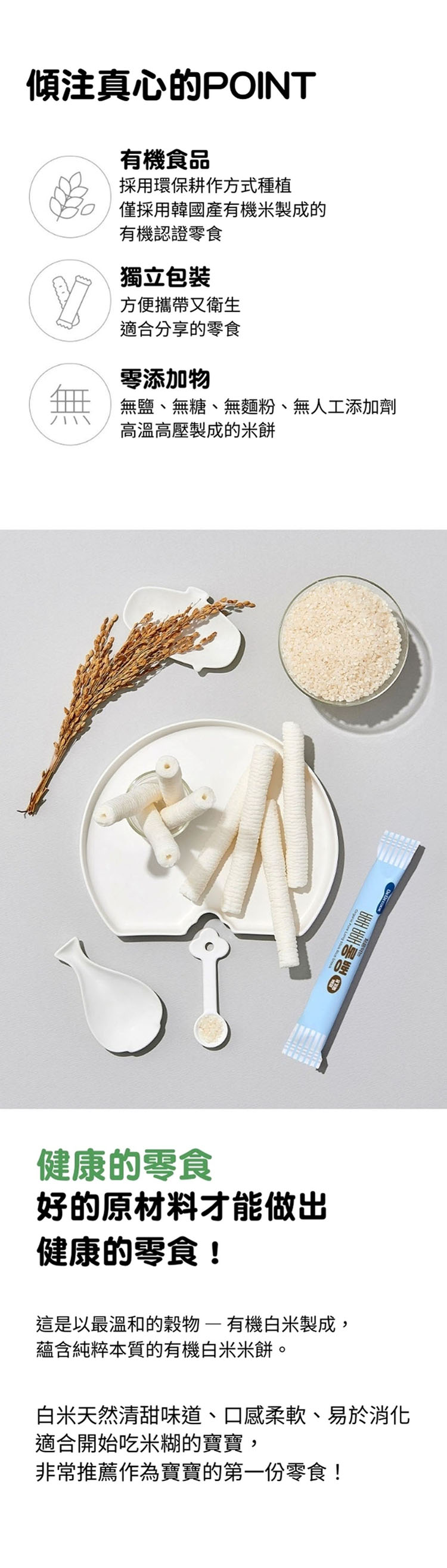 - 選用韓國產的有機白米,天然無添加,營養豐富