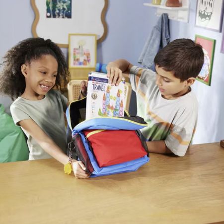 - 這款旅行套裝採用鉚釘和 網格設計等標誌性安全功能,確保玩耍安全,