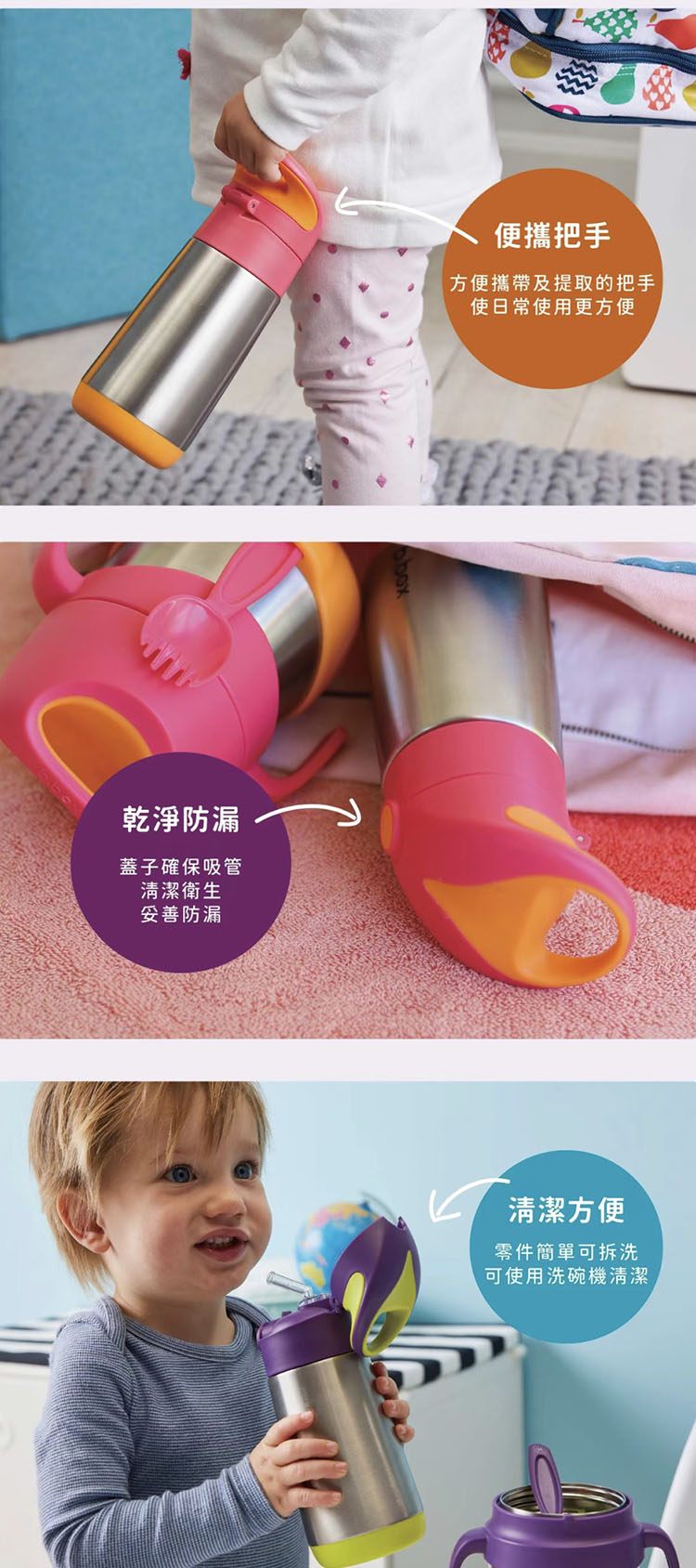 - 雙層不銹鋼,一體式便攜手柄,一鍵式按鈕設計,一按即開