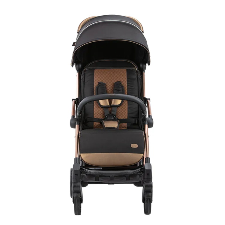 - 自動折疊系統,只要輕輕一按,嬰兒車就會自動折疊,折疊後非常小巧可自行站立,