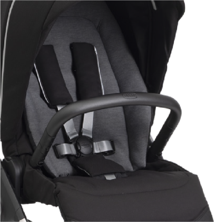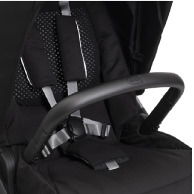 - 時尚銀色車身、優質黑色布料及塗層材質,搭配Chicco 金屬徽章,