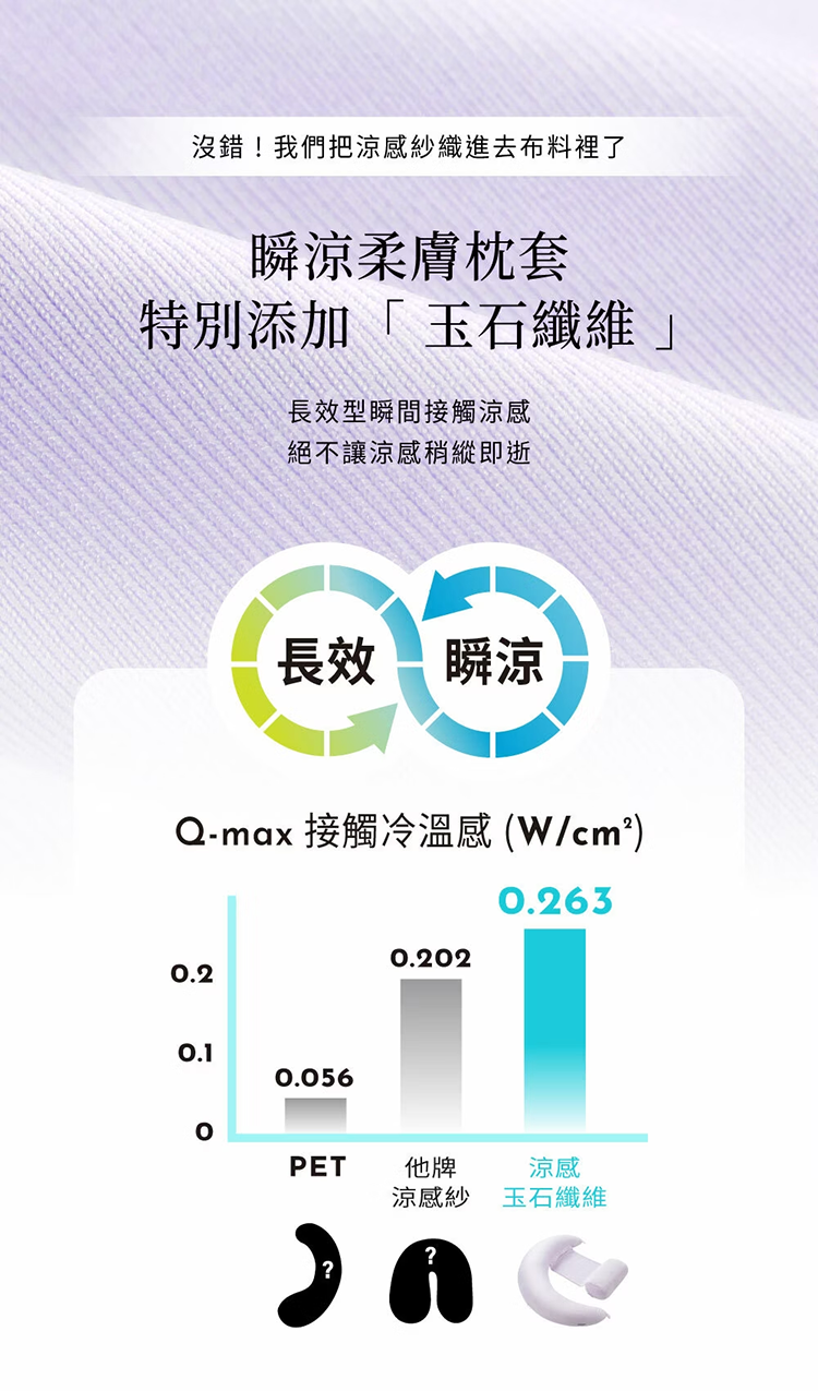 - 涼感布材質,添加玉石纖維,瞬間降溫