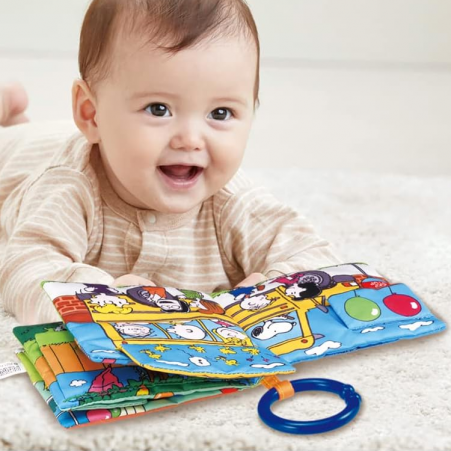 - 布書,可裝載嬰兒車上,掀開摸一摸就會發出咔擦擦咔的聲音,激發寶寶好奇心