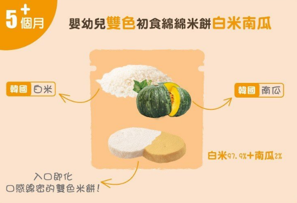 - 選用韓國產的白米、菠菜粉等促進腸道蠕動,幫助消化