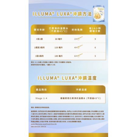 - 脫脂牛奶,乳糖,植物油(sn2棕櫚酸棕櫚油,葵花籽油,菜籽油),含α-乳白蛋白之乳清蛋白 (alpha-MFGM) (8%),低聚醣 (MOS) (7.4%)