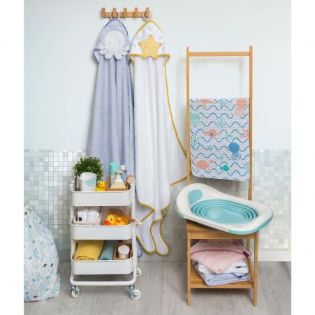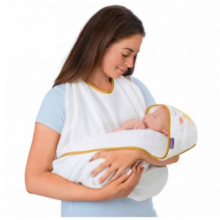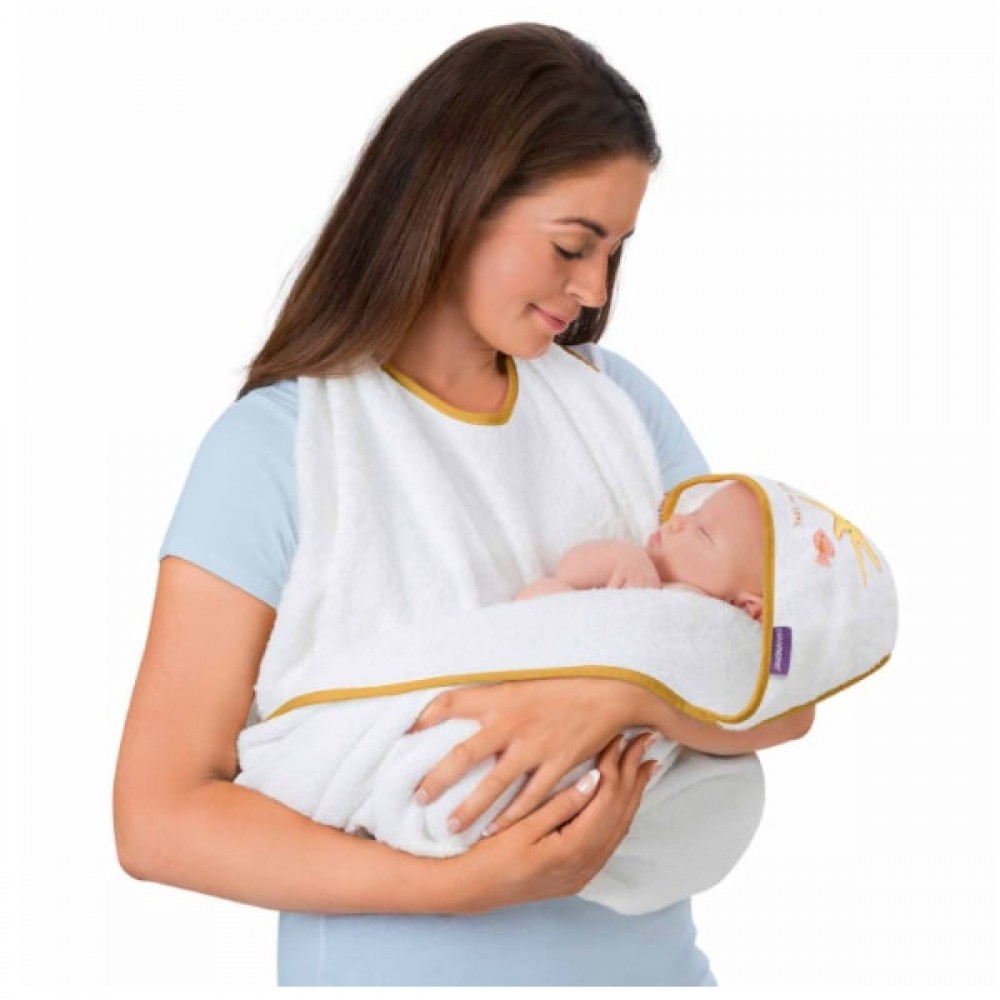 - 洗澡時,將毛巾像圍裙一樣系在脖子上,可以作為您衣服的防濺板,確保兩隻手可以安全抱起並最大限度地擁抱寶寶