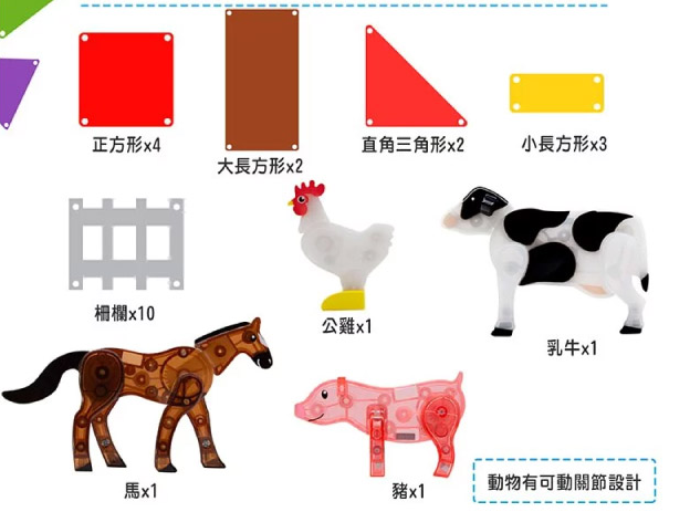 - 設計多款農場動物,每一款都有不同的小動物陪伴孩子的磁力片時光,一起和孩子打造幸福的親子同樂時刻吧