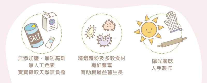 - 精選麵粉及多穀食材,纖維豐富,有助腸道益菌生長