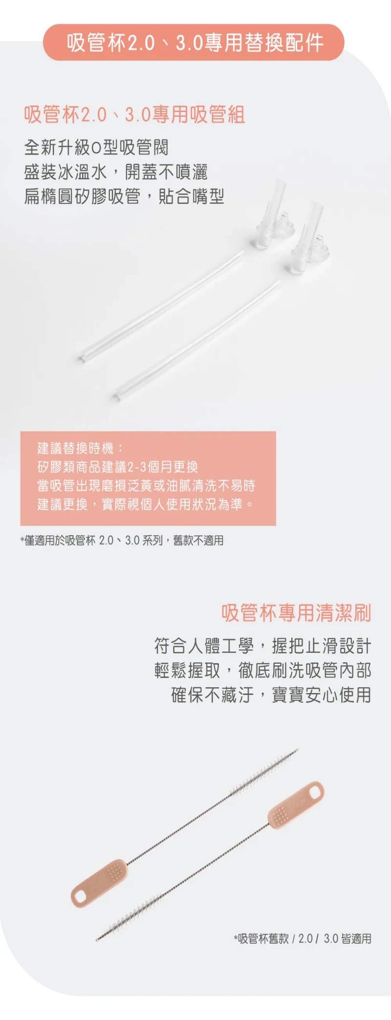 - 這款吸管沒有設計咬閥,讓孩子們可以輕鬆吸吮,有助於促進良好的牙齒健康,並引導他們掌握吸吮技術