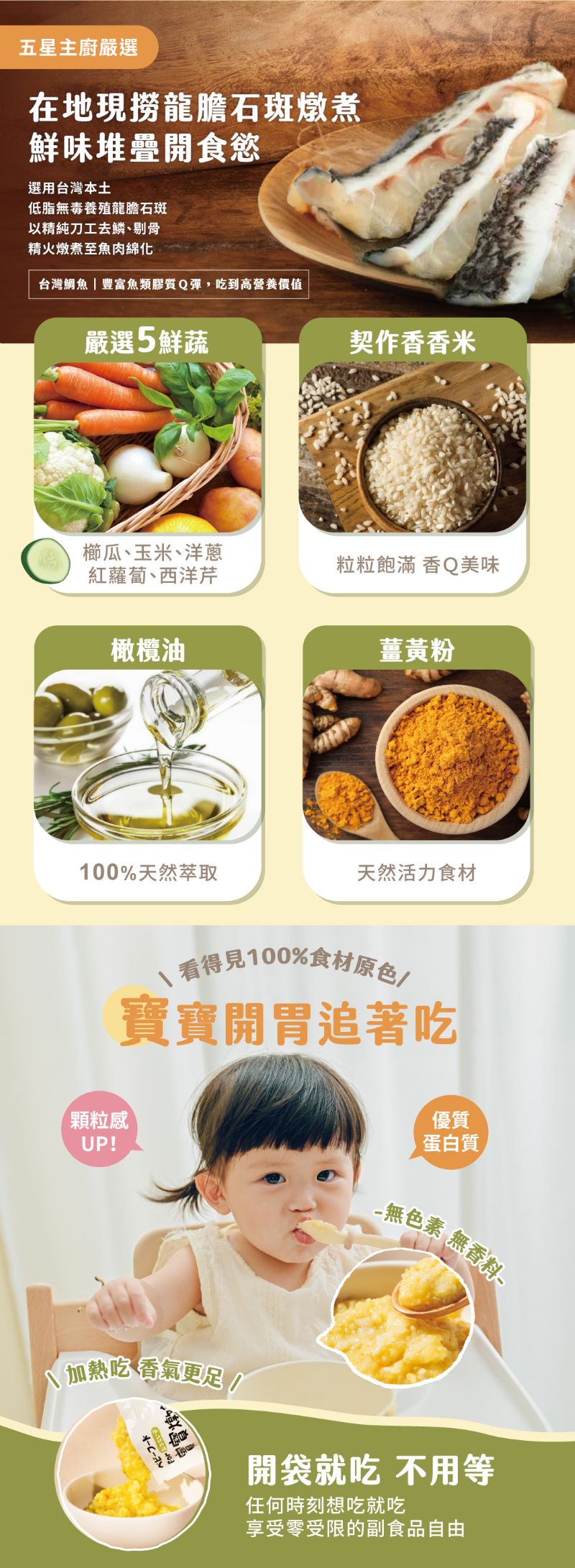 - 珍貴龍膽石斑+Q彈鯛魚,奢華海味新體驗,寶寶開胃主動吃!