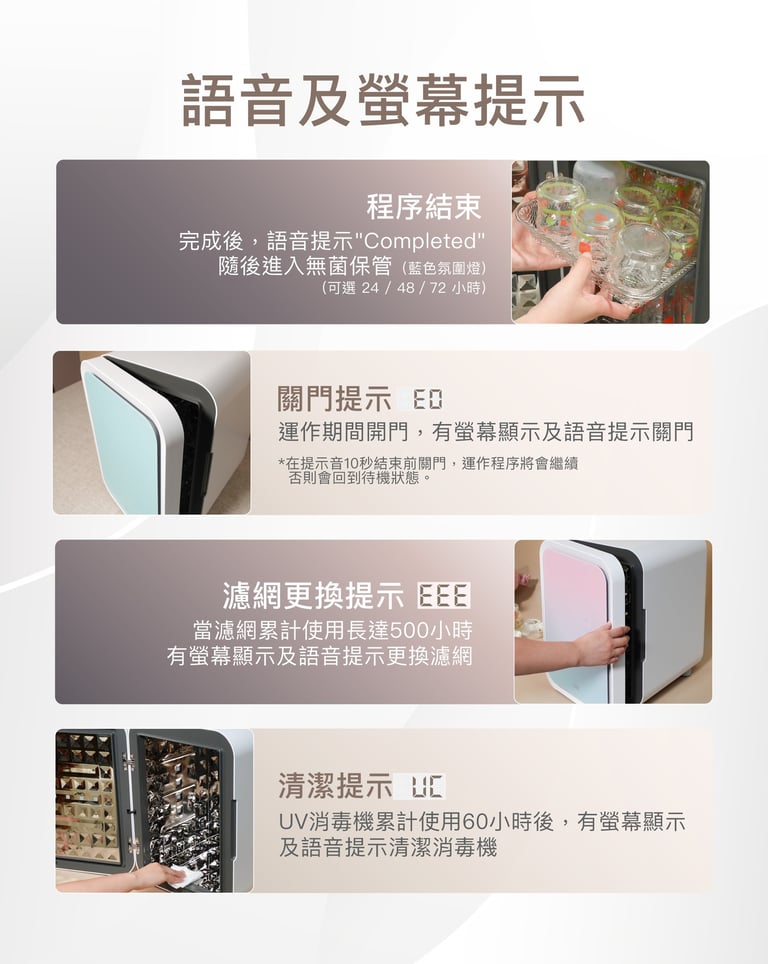 - LED觸控螢幕配備語音及畫面提示