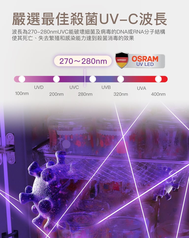- 當中有德國Osram頂尖UV LED燈珠