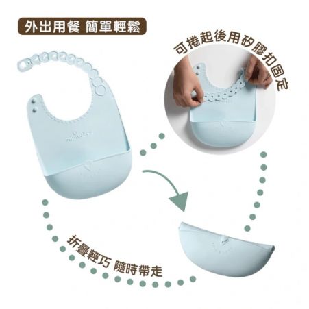 - 可捲扣式矽膠圍兜,出門在外好收納,飯後即刻帶走,立體防水,一件式好清洗,