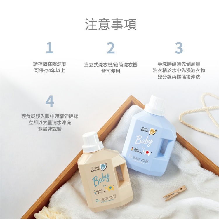 - 溫和配方,不刺激寶寶稚嫩肌,無須再添加柔軟劑,也能將衣物洗淨不殘留