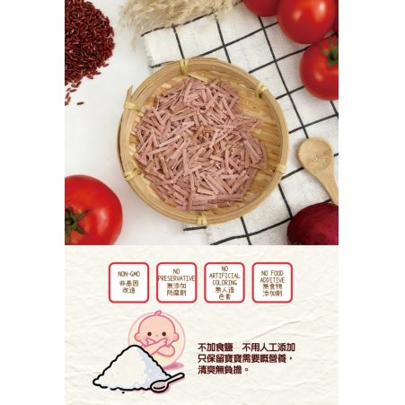 - 採用有機高蛋白麵粉製作,高蛋白質是寶寶發育不可缺少營養,