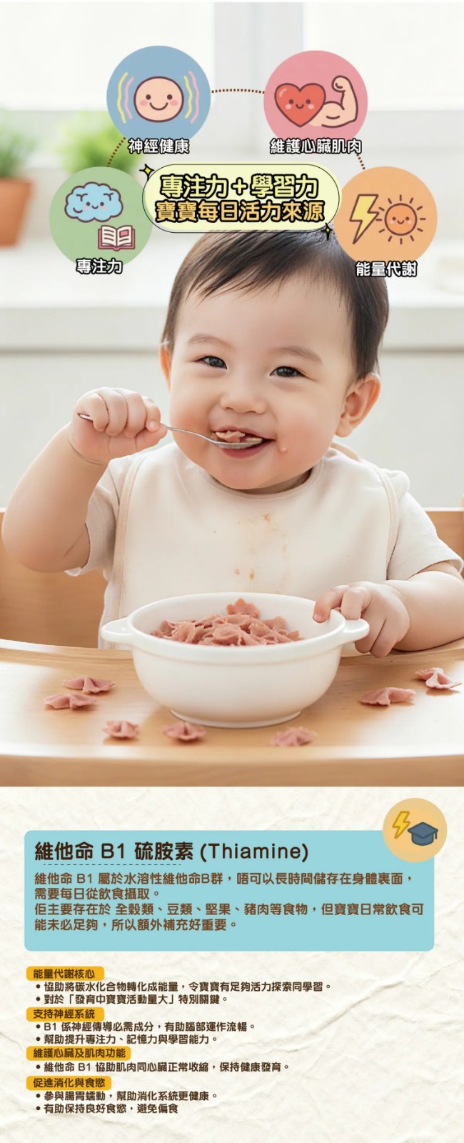有助肌肉組織發育,給寶寶每日都有足夠的能量去探索世界