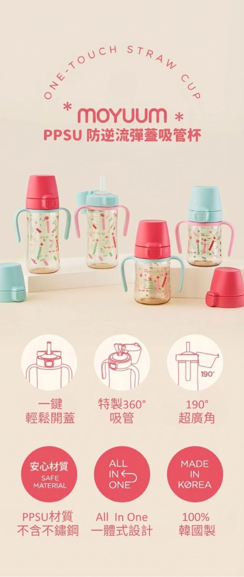 - 190度 廣角開蓋,寶寶輕鬆飲用