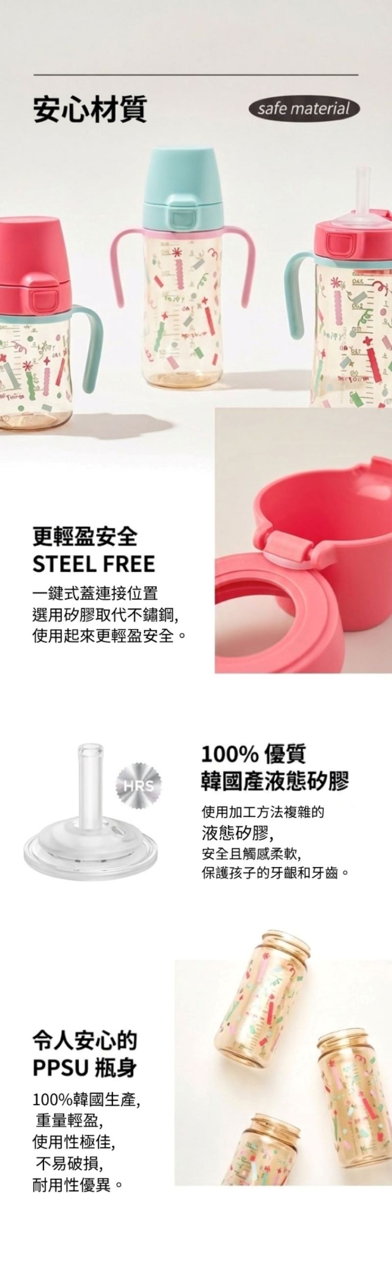 - 寬口奶瓶: PPSU (0~200℃)