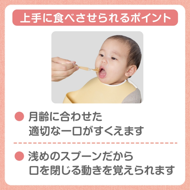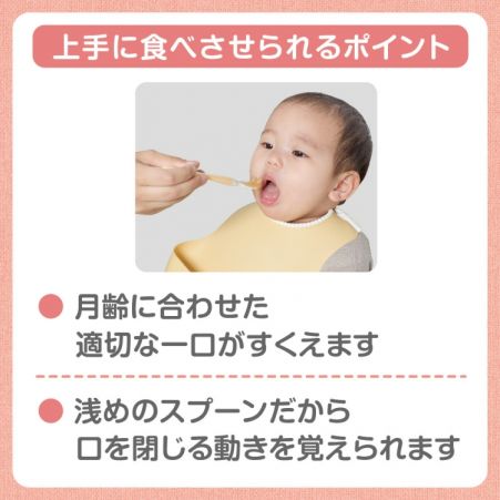 - 湯匙前端有安全設計,不會太深插入寶寶口中,造型設計成圓弧型且柔軟,