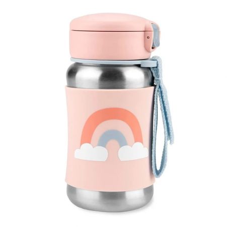 - 瓶身帶有易抓矽膠套,彈出式杯蓋,柔軟的吸管極易吸吮,配有鉤環抓帶可固定在任何物品上