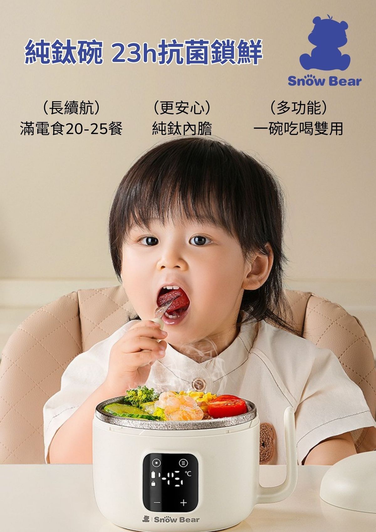 - 碗內部消毒使用70℃巴氏消毒模式,1分鐘完成