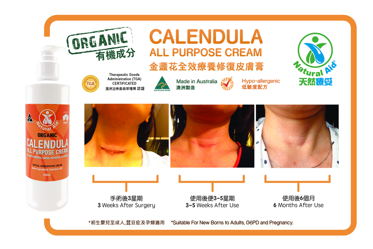 - 適合所有人仕包括初生嬰兒、兒童及成人使用- 具備消炎殺菌之功效及舒緩、鎮靜、療養、修復、防過敏之特性,有效促進傷口加快復原,再生肌膚,亦可舒緩女士和懷孕婦女私處部位的痕癢- 適用症狀 : 療養割傷及擦傷磨損之傷口、受刺激而泛紅之皮膚、皮膚疹及過敏性皮膚炎 ; 滋潤乾燥肌膚 ; 減退疤痕 ; 放射治療後發炎的肌膚- 有機成份,符合澳洲治療產品管理局(TGA)規格,初生嬰兒及懷孕婦女均可安心使用- 容量:250ml- 澳洲製造