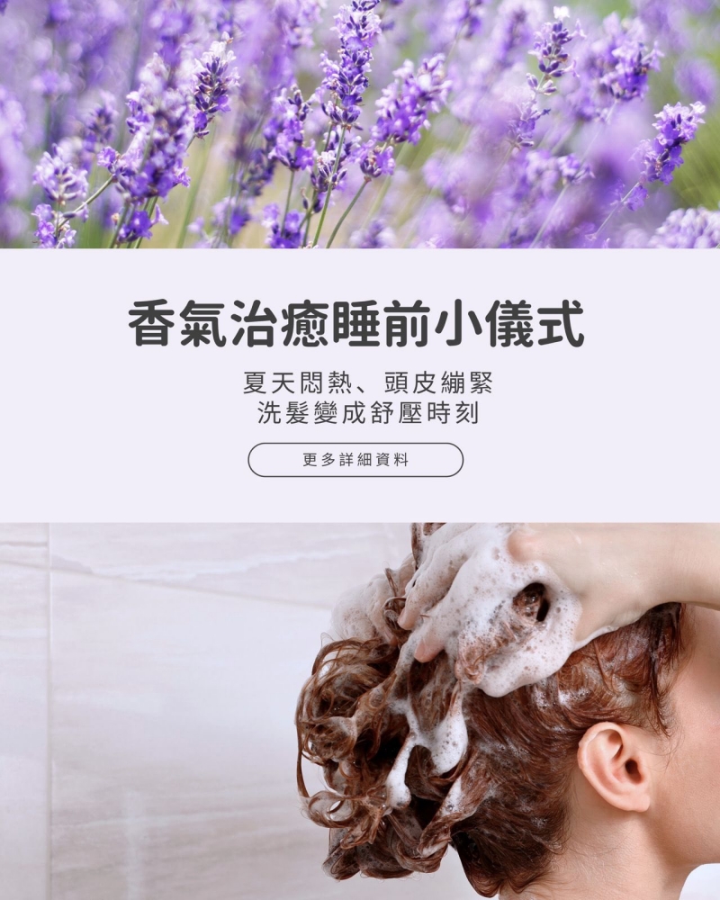 並有助平衡皮脂,預防油性髮質。薰衣草與有機香草的結合,達致鎮靜頭皮、