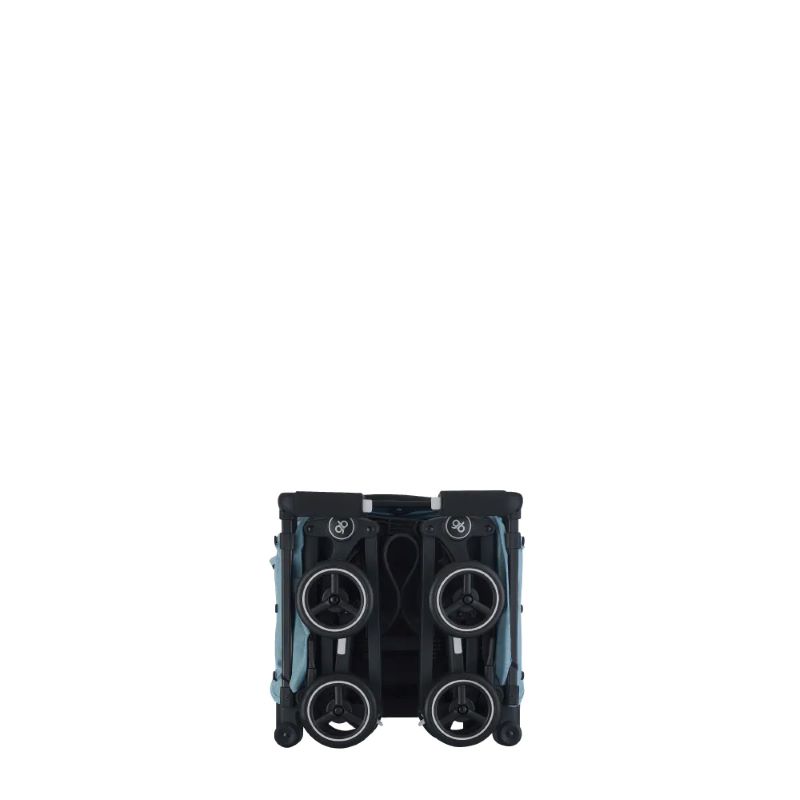 - 超級收納設計可在幾秒鐘內將嬰兒車收摺成包包形狀,並符合飛機手提行李箱尺寸,附有收納袋及揹帶