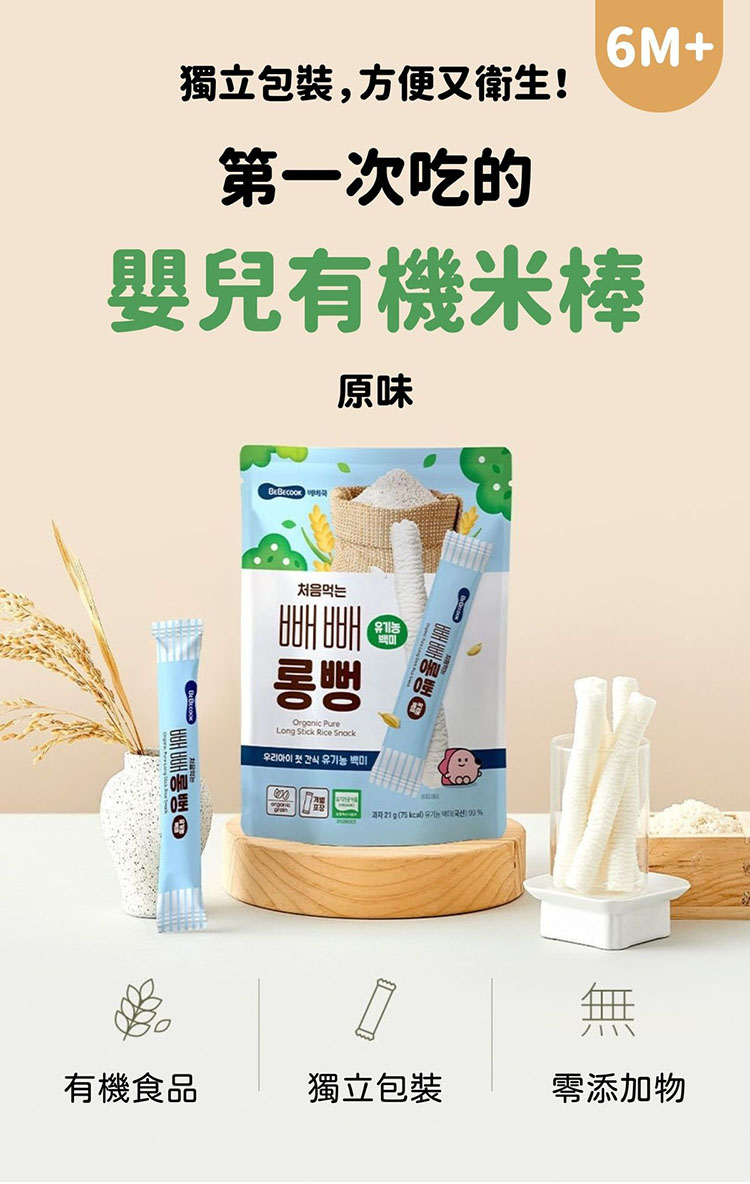 - 選用韓國產的有機白米,天然無添加,營養豐富