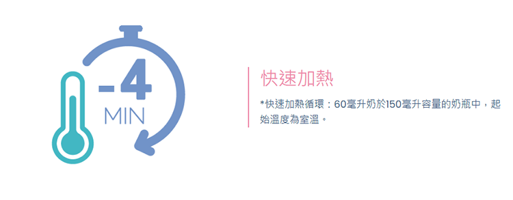- 150ml容量配方奶從常溫到加熱只需4分鐘