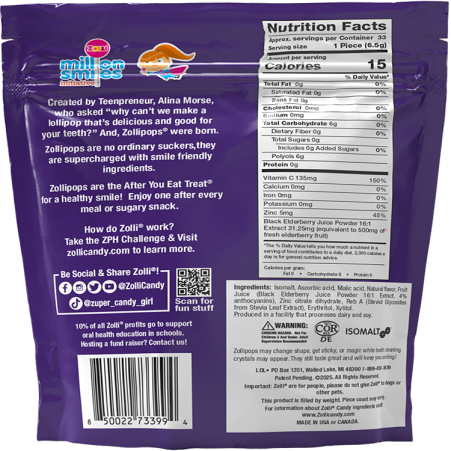 降低酸度Zollipops 可以幫助牙齒更快地重新礦化並使它們變得更堅固