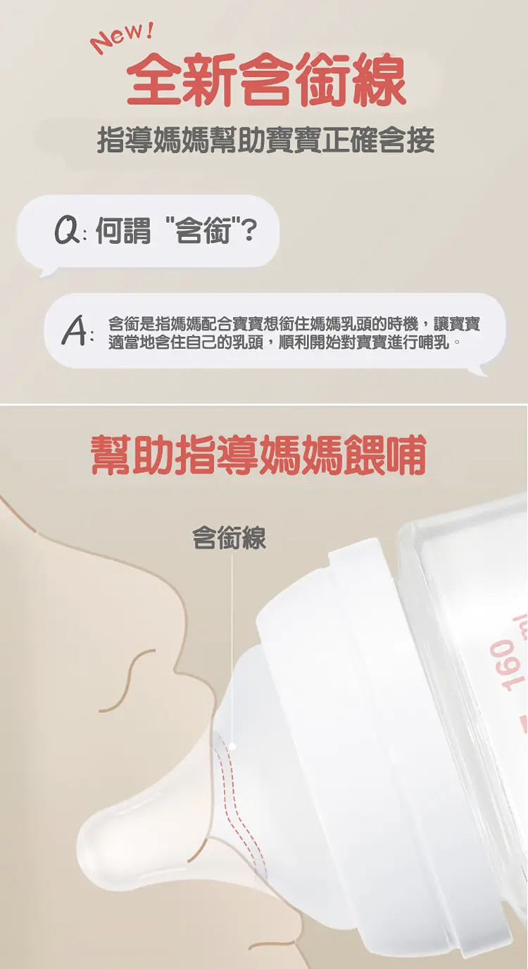 1.新增「吸附線」:新增建議寶寶吸附深度指示波浪線,協助寶寶正確吸附,即使是新手爸媽哺乳也無需焦慮