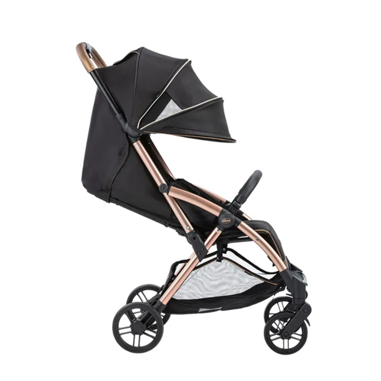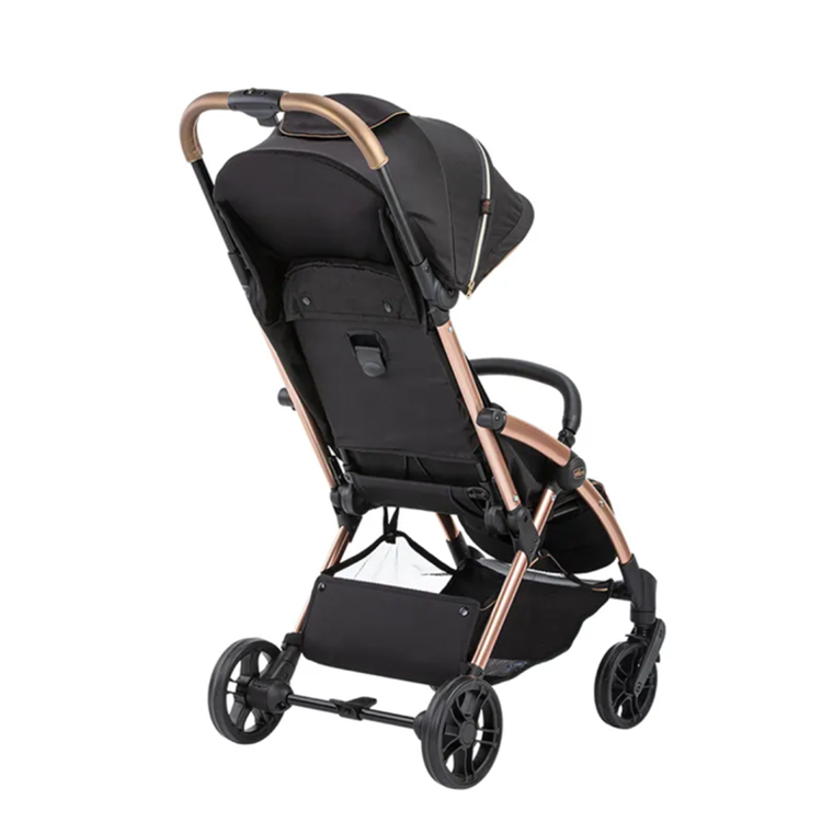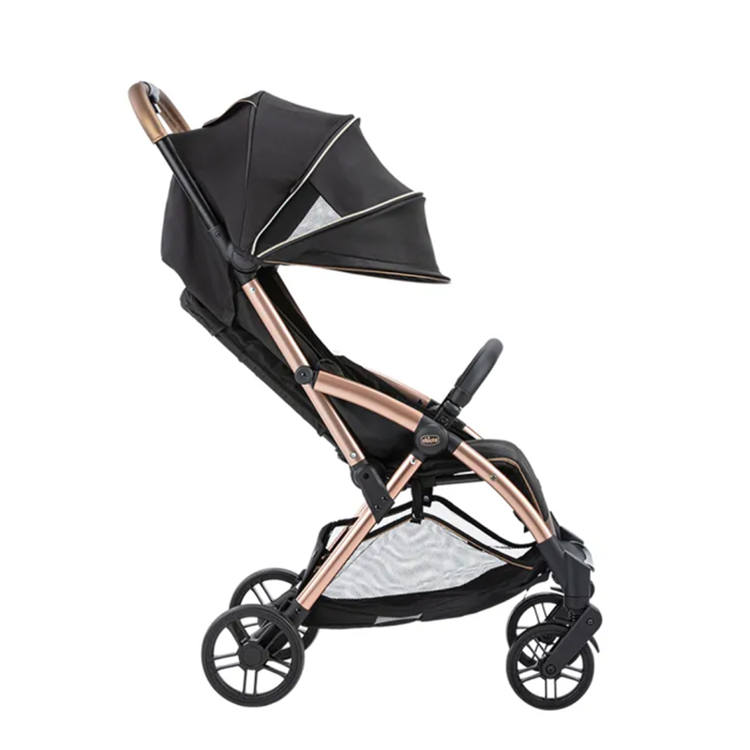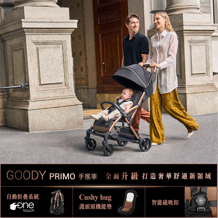 - 自動折疊系統,只要輕輕一按,嬰兒車就會自動折疊,折疊後非常小巧可自行站立,