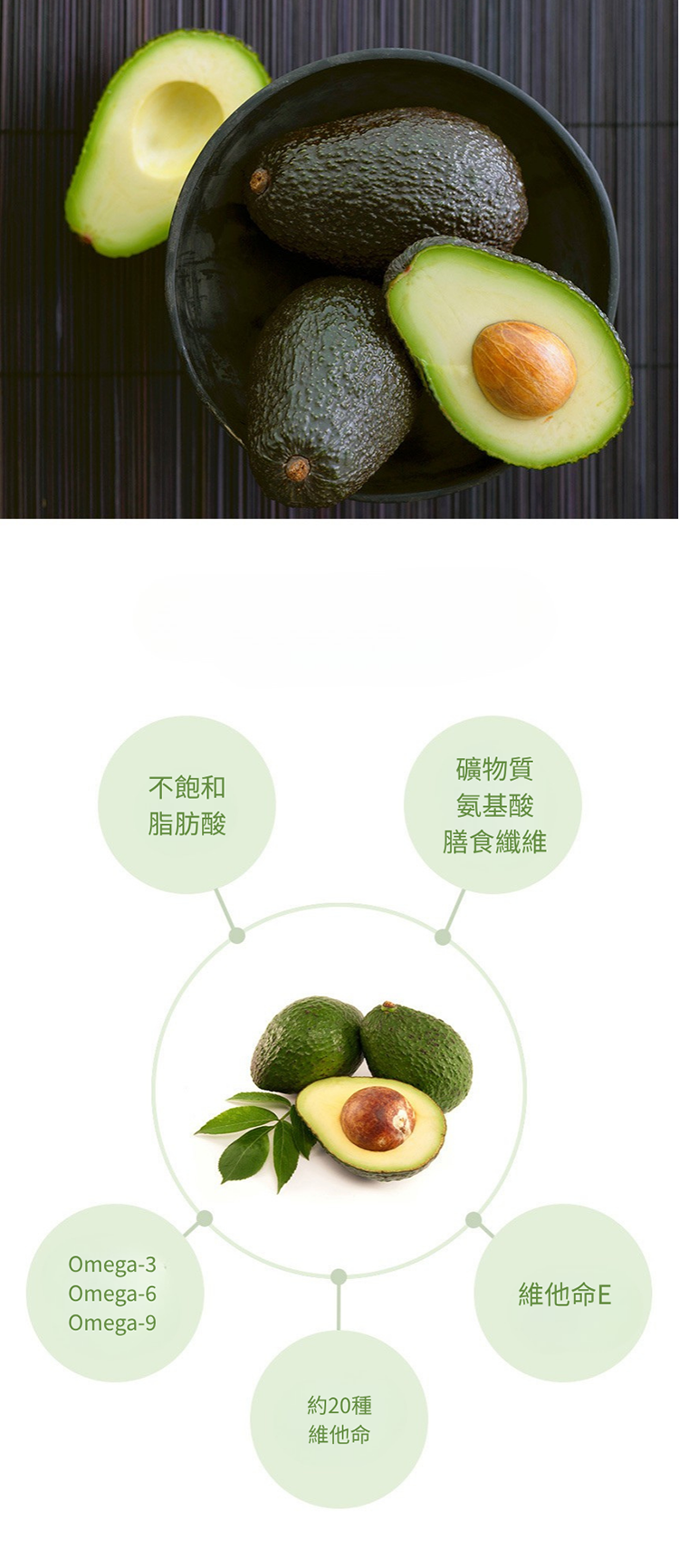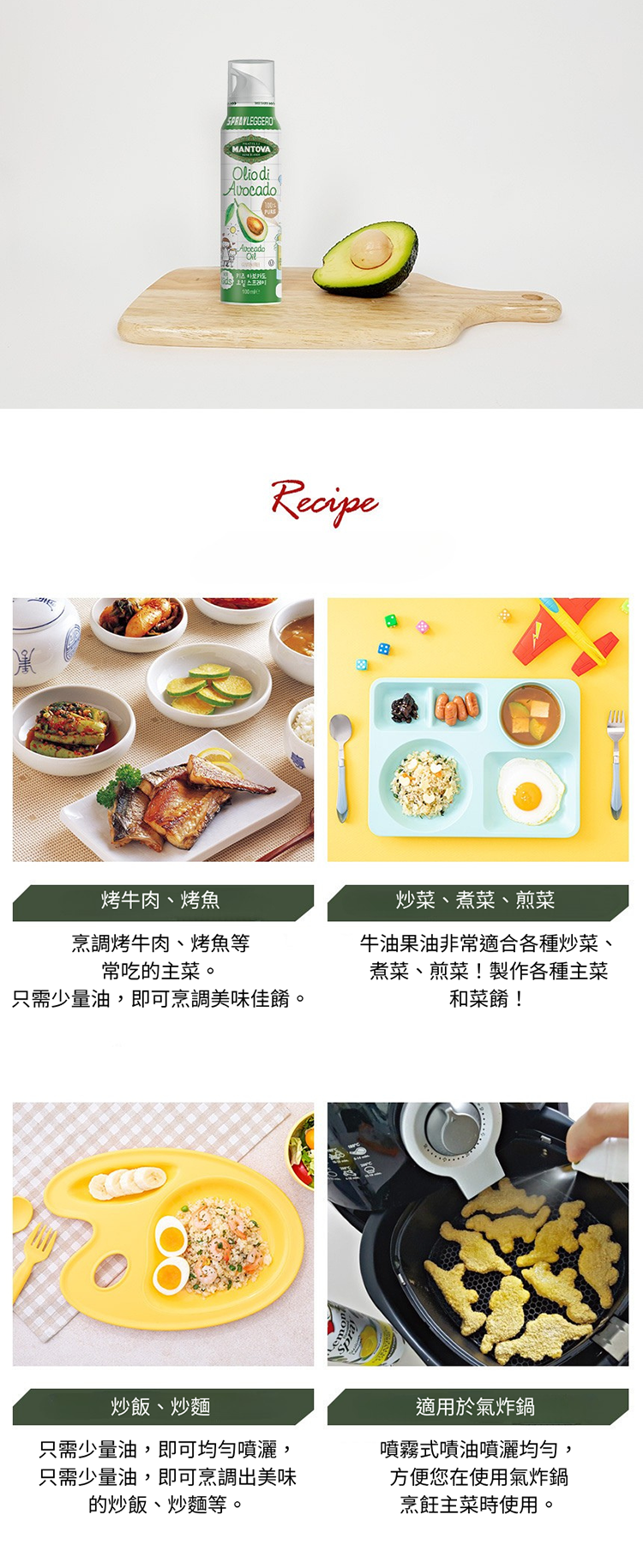 - 富含單不飽和脂肪酸與維生素E,同時可以促進類胡蘿蔔素等營養素的吸收,發煙點相當高