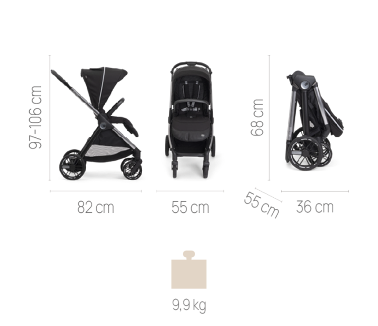 - 時尚銀色車身、優質黑色布料及塗層材質,搭配Chicco 金屬徽章,