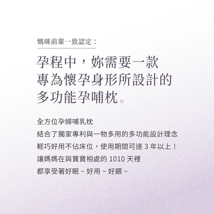 - 可使用長達三年的全方位哺乳枕,好眠+好用+好餵
