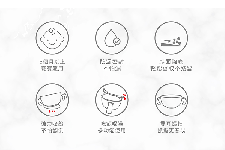 - 符合人體工學的雙耳握把,讓小手拿得更穩,養成良好進食習慣